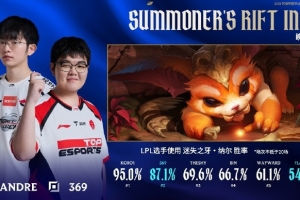 在历史LPL选手使用纳尔(场次不低于20场)胜率排行榜中,369 位居第二,Flandre位居第六;