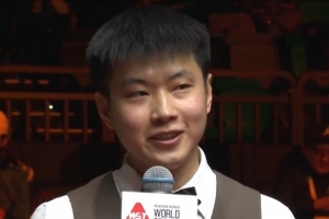 赵心童:其实我自己也没想到,因为第一轮和第二轮我都差点输了,后面又逆转回来了,又有好多粉丝观众支持我们中国选手,给了我很大的动力。再加上,要多谢主办方,给我们这么好的比赛机会,有这么好的平台,我才有机会拿到这个冠军,多谢。