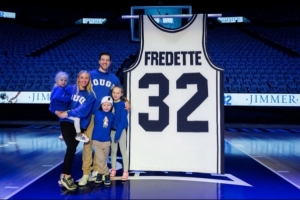 弗雷戴特在去年4月份宣布退役,他曾在杨百翰大学效力4个赛季,生涯四年场均18.7分2.6篮板3.7助攻1.2抢断。他在大二赛季开始坐稳球队首发位置,在大四赛季打出惊人的场均28.9分3.4篮板4.3助攻的数据,该赛季拿到了美联社年度最佳球员、约翰·伍登奖、奈史密斯奖、全美第一阵容等多项全美大奖。