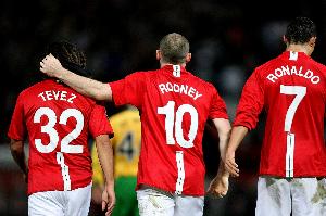 2007-08赛季的曼联拥有一条令人兴奋的锋线,由鲁尼、C罗和特维斯组成,这三人共在各项赛事中打入79球。他们能够以各种方式进球,无论是破解密集防守还是通过快速反击得分。2007-08赛季是C罗在曼联最辉煌的一年,他在当年晚些时候首次拿到金球奖。葡萄牙人在34场联赛中打进31球,在49场比赛中总共打进42球。曼联其他攻击手包括萨哈(5球)、吉格斯(4球)和纳尼(4球),但真正推动球队走向成功的是C罗、鲁尼和特维斯的三叉戟。
