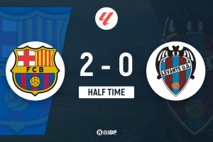 体育资讯2月23日讯 北京时间2月22日晚23时15分,2025-26赛季西甲第25轮在诺坎普球场展开角逐,巴塞罗那主场迎战莱万特。上半场贝尔纳尔4分钟闪击,德容收获赛季首球,埃里克和坎塞洛助攻,霍安·加西亚救险,巴萨主场暂时2-0领先莱万特。