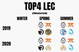 外媒统计2019年以来每赛季LEC前四队伍:G2从未缺席