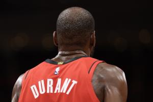 体育资讯1月21日讯 NBA常规赛,火箭主场111-106逆转马刺,赛后杜兰特接受了采访。