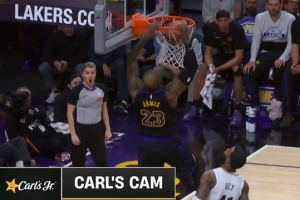 失误有点多!詹姆斯传球又被抢断 墨菲反击暴扣反超打停湖人