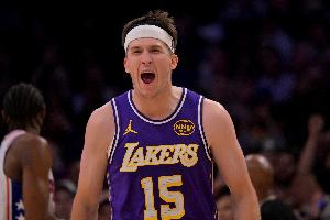 本场比赛,湖人球星奥斯汀·里夫斯开局后状态不佳,手感极其冰冷,屡屡尝试却无功而返。但在开局8中0后,他找回了进攻端的自己,末节更是凭借两记三分助队轰出进攻高潮,一举拿下比赛!