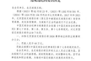 足协公布处罚公告,北京国安被扣5分+罚款人民币40万元。随后北京国安官方回应:“人在做,天在看!头顶三尺有神明!”