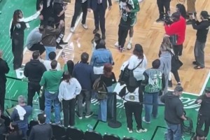 解说:塔图姆还需要时间来找投篮感觉 但他已经完全地融入了球队
