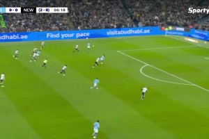 纽卡8分钟2球领先卡拉巴赫!特里皮尔传中,佳夫高高跃起头球破门